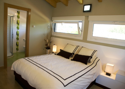 En Orlegy todo está pensado para que puedas disfrutar de una estancia acogedora. Para ello te ofrecemos una habitación con cama de matrimonio y baño adaptado a la normativa de accesibilidad en la planta baja. En la planta primera tenemos una habitación con dos camas individuales y baño incorporado y una tercera habitación con cama de matrimonio y baño incorporado. Además también disponemos de una cocina completamente equipada, salón-comedor con una amplia cristalera que comunica directamente con el porche en el que podrás descansar en su zona de terraza junto al jardín desde el que podrás disfrutar de una agradable vista.